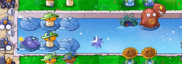 雙魚蓮葉:初始擁有一顆魚雷子彈,當(dāng)前方3格內(nèi)有僵尸時(shí)發(fā)射魚雷子彈,可擊中潛水的僵尸,命中僵尸時(shí)造成200點(diǎn)傷害(可直接擊殺1只普通僵尸)